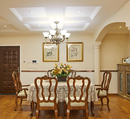 是以中國傳統(tǒng)文化作為背景,在色彩搭配上以黑、紅、為主,室內多采用對稱式的布局方式,格調高雅,造型簡樸優(yōu)美,色彩濃重而成熟。